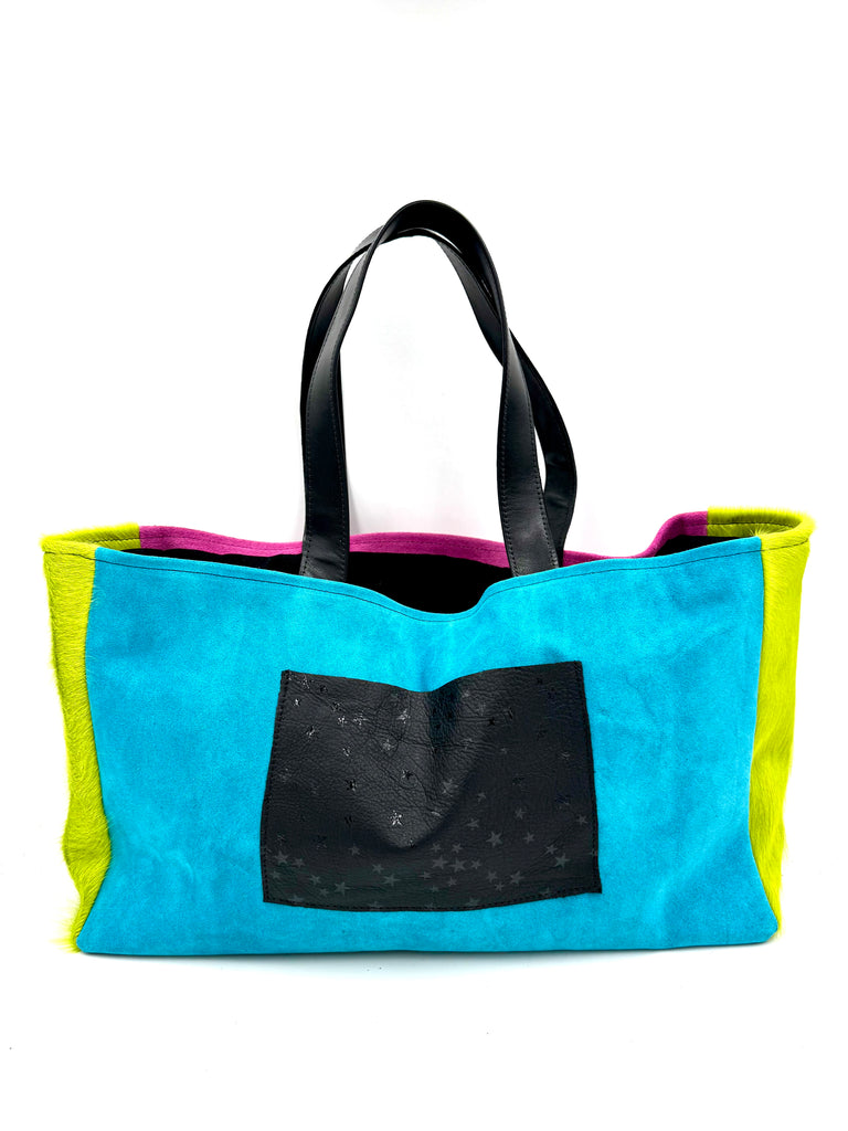 Pink suede/aqua suede/hair on hide - $ 295.00